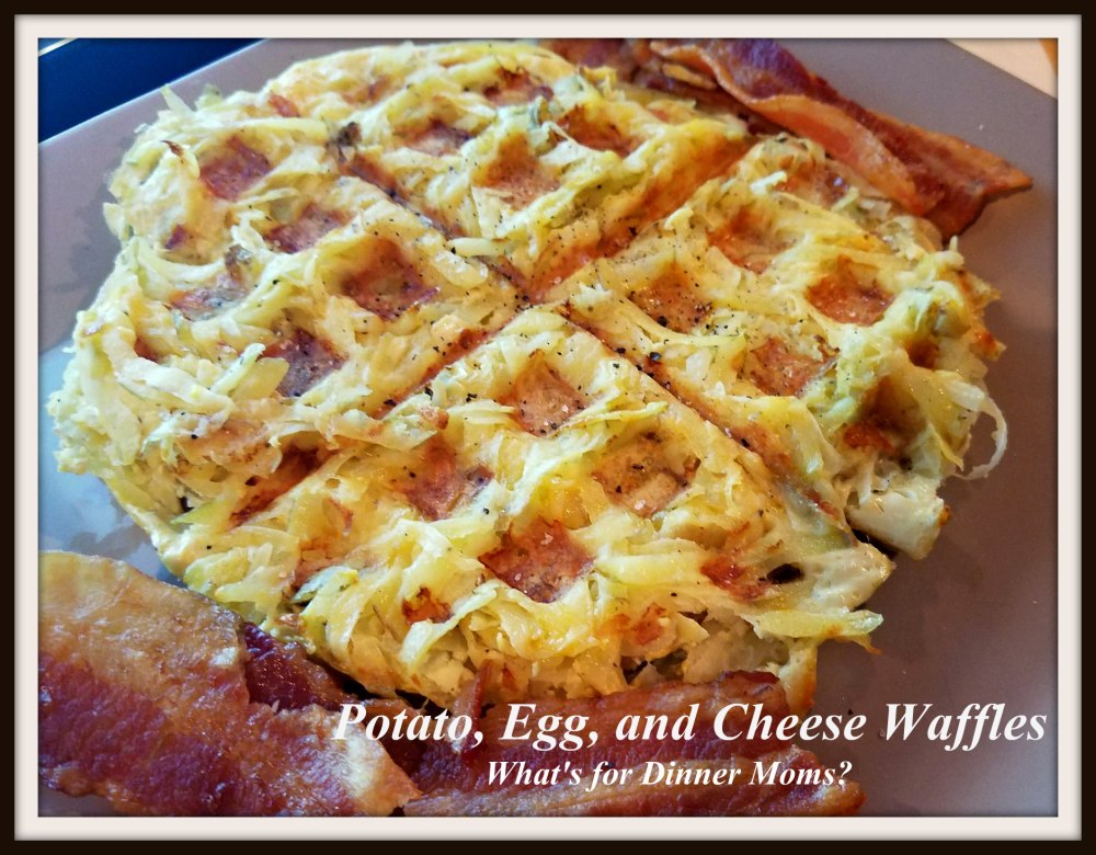 Thursday is our usual Breakfast for Dinner meal. Thursdays are the day that everything seems to be scheduled at once so we have to have something super easy on hand to make for dinner. When I first suggested this meal no one understood what I wanted to try. They thought I was mixing potatoes into waffle batter and making them eat it. I didn’t understand why they were hesitant about this meal until they told me during dinner they had all thought the same thing. So, my communication skills need work. (smile)