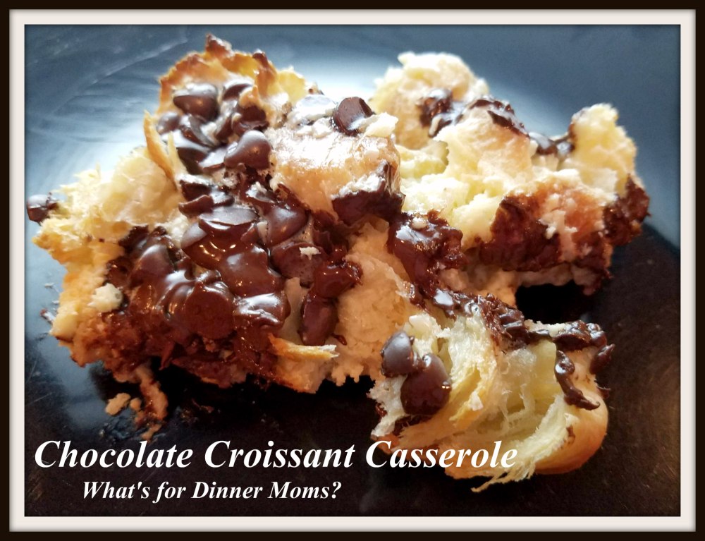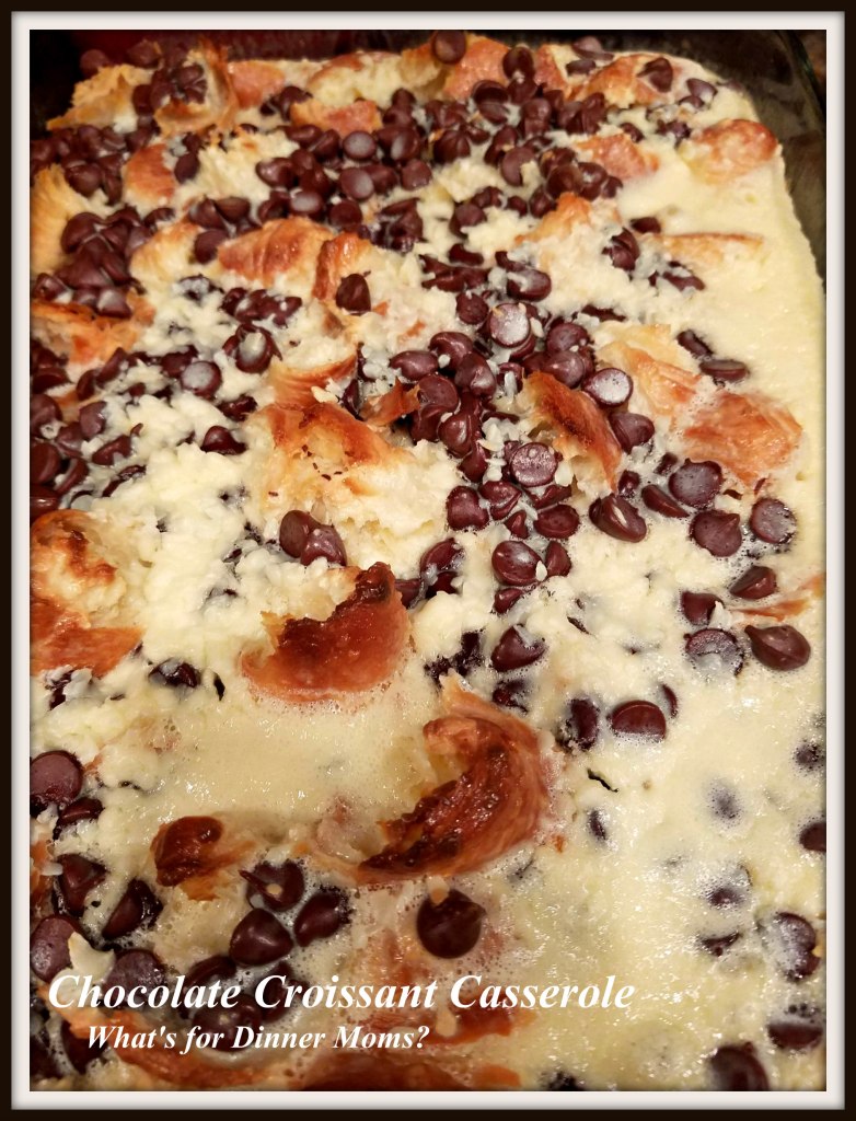 It’s Breakfast for Dinner Thursday! My family has been talking quite a bit about cannolis recently so I was thinking of making a cannoli stuffed pancake or a cannoli breakfast casserole but I didn’t have the right kind of cheese on hand to make something like that. What I did have though was croissants from Aldi. They had been on sale for $1.69 for 6 so I bought 2 boxes. I ended up using a box and a half – 9 medium croissants in this dish. So, what to make with them? A pseudo French Toast Casserole/Chocolate Croissant Casserole.