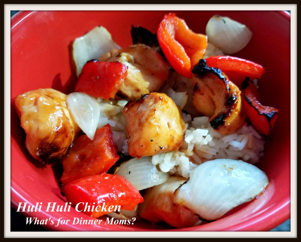 Huli Huli Chicken is a Hawaiian dish. Huli means “turn” in Hawaiian and refers to the way the chicken is cooked. It is usually cooked between two large racks that are constantly flipped to get a good char and lots of surface cooking. I don’t have two large racks to cook on my grill but I do have skewers. Thought this is not the original recipe it is as close as I could get. Make sure you turn the skewers every few minutes to get the same surface cooking.