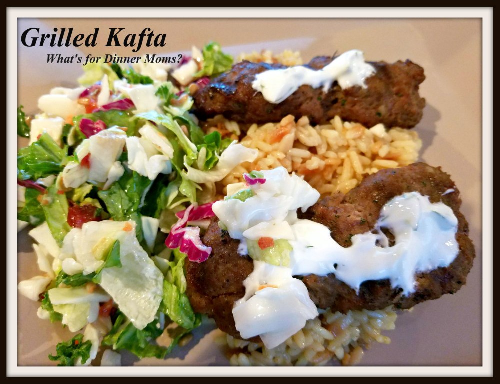 We love Kafta. It is funny when we grill this out all the people that are walking by kind of stop and sniff. It smells amazing as it is cooking. All the spices are delicious! It is so simple to make too. You can top this with tahini from a jar or we make our own tzatziki to top the Kafta with. This is a great dinner served with grilled vegetables and pita, or rice pilaf and a green salad. So many variations for a delicious dinner.