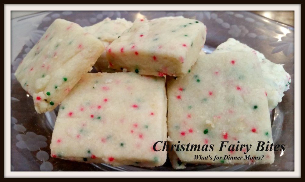 Christmas Fairy Bites are the simplest cookies to make. They are a shortbread cookie with Christmas nonpareil sprinkles stirred in. They are simple and tasty.