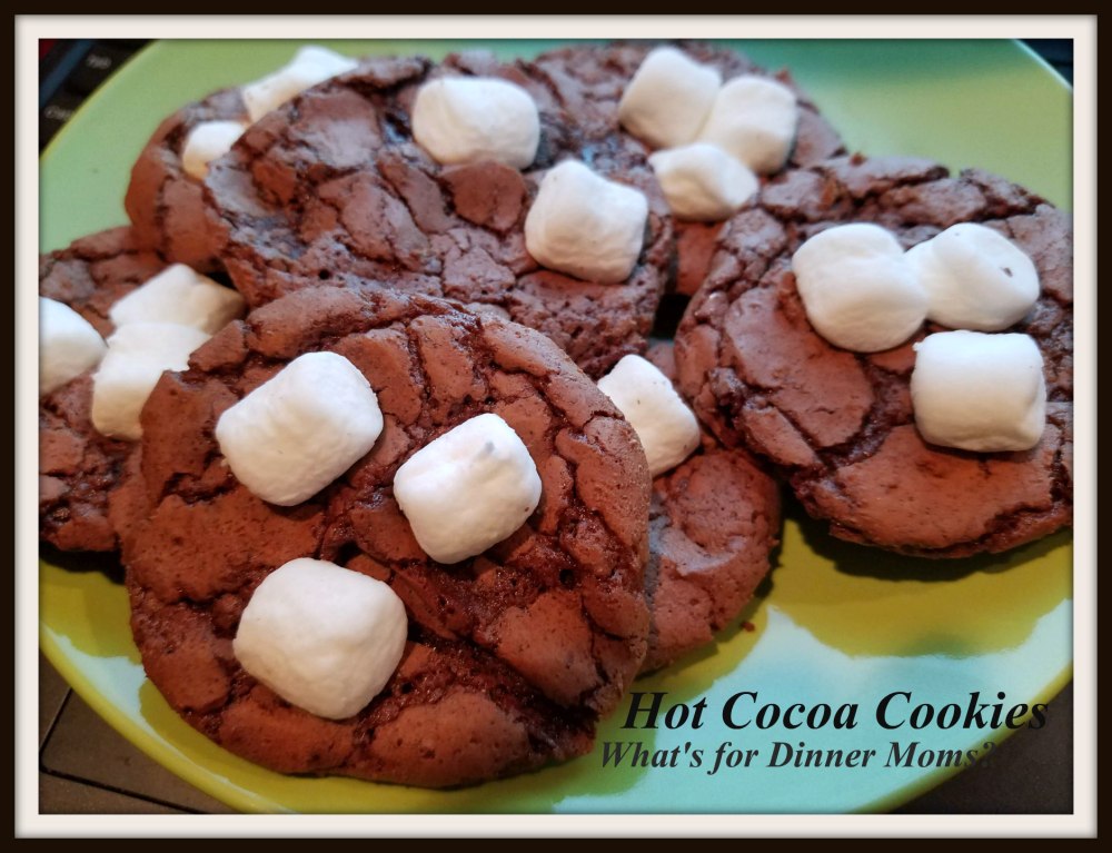 Hot Cocoa Cookies are super simple to make and with a few mini marshmallows on top make is seem like a mug in hot cocoa in cookies form. These make a nice addition to a cookie tray or a nice hot cocoa buffet for something different.