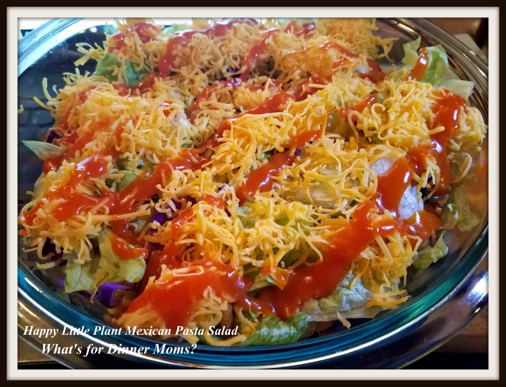 So, to make a recipe (because you all know me I am NOT about throwing good food away) with them I needed to use them in a dish with lots of flavor to mask the after taste. I made a layered Mexican Pasta Salad. My suggestion for serving is extra salsa, taco sauce, and salad dressing over the entire salad.