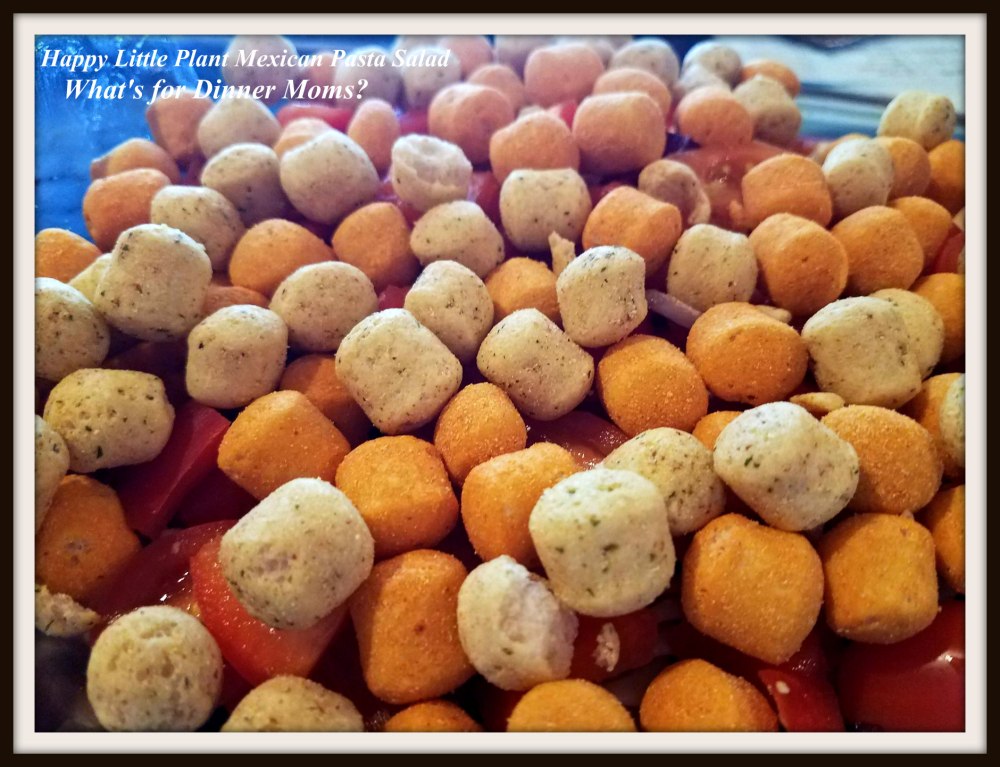 Ingredients: Directions:Happy Little Plants Protein Puffs Mexican Pasta Salad