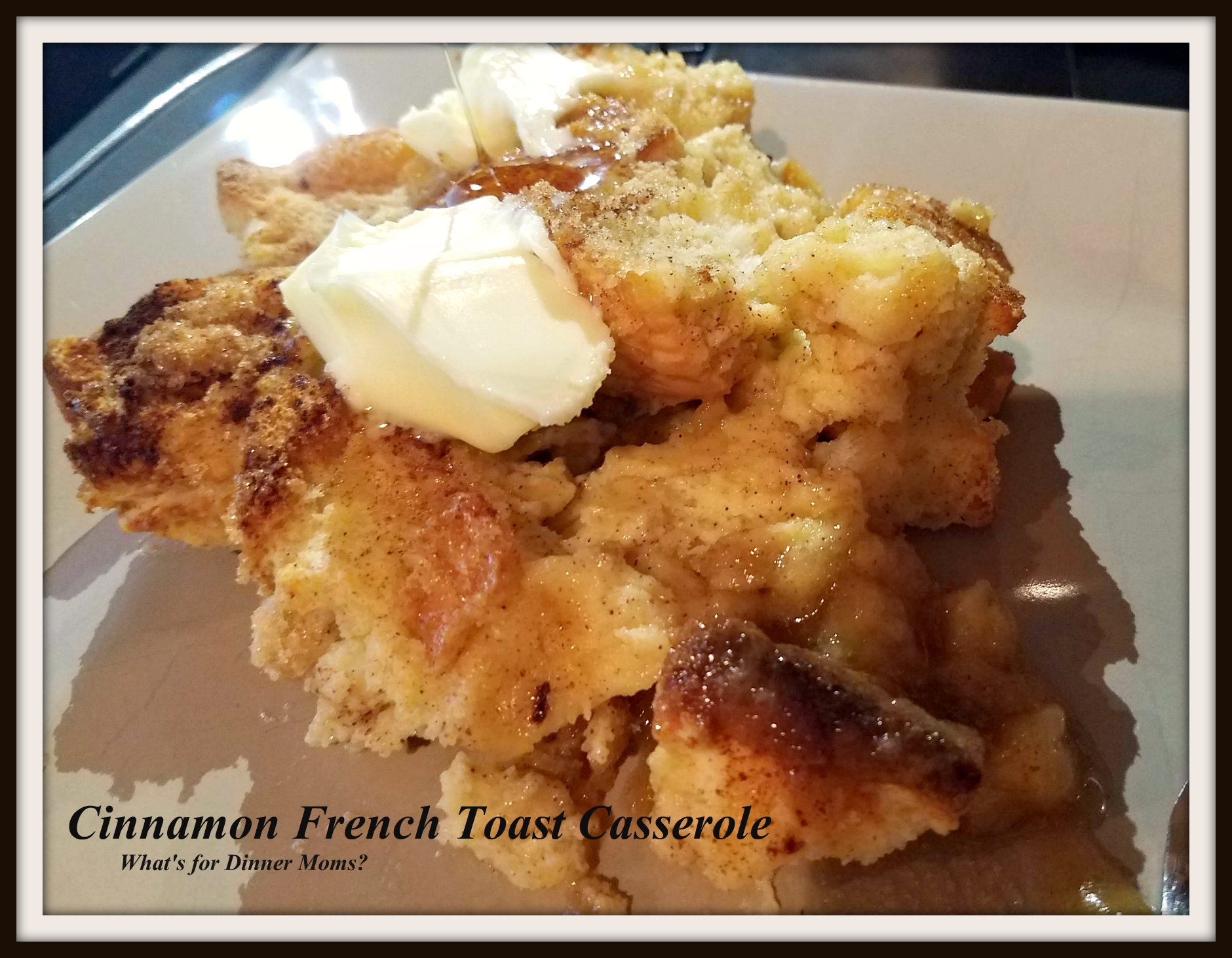 This is a sweet cinnamon roll type of breakfast casserole that is also great for dinner or brunch. We serve this with a side of fruit salad for dinner.